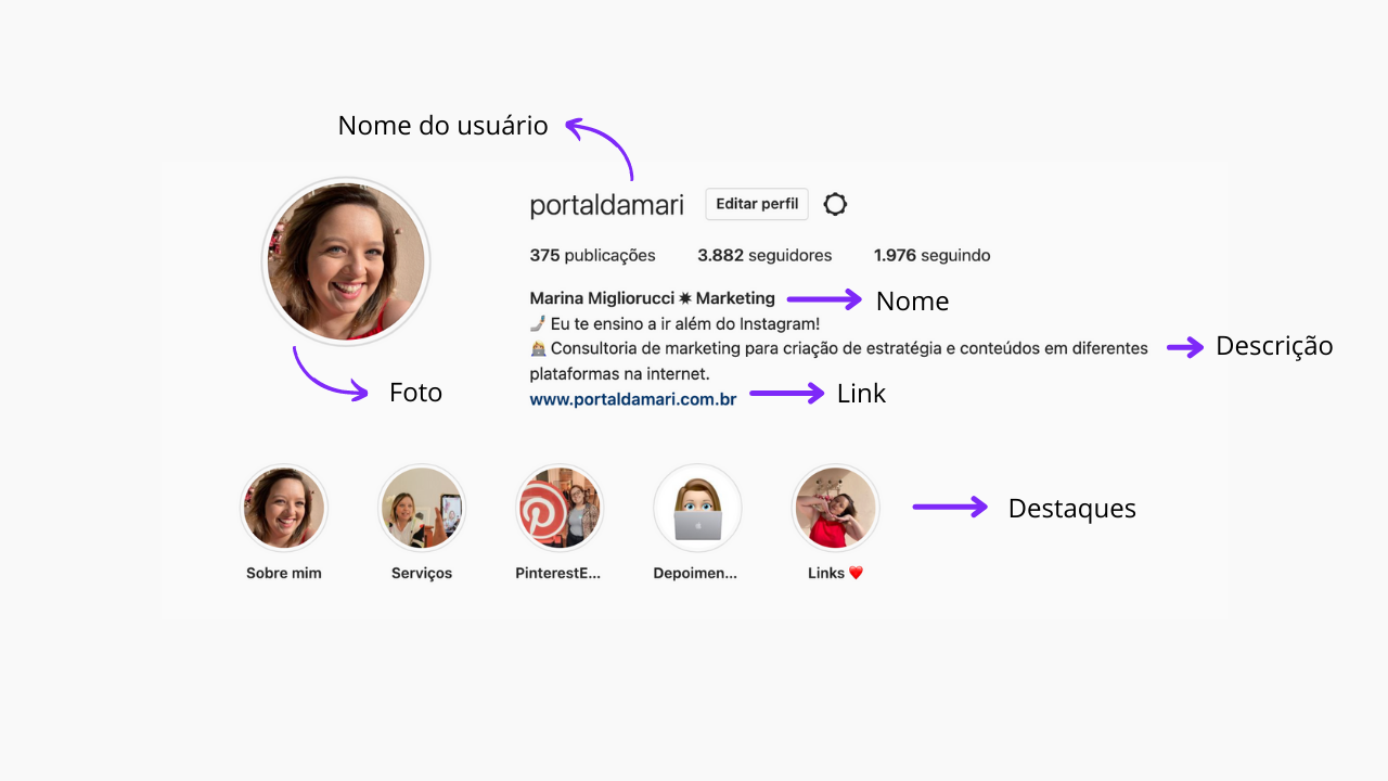 Antes de entender o que você precisa melhorar na sua bio, vamos conhecer cada espaço?
