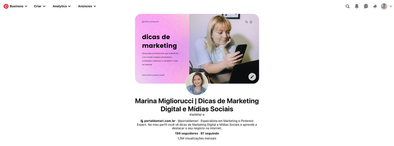 - O número de visualizações mensais (principal métrica do Pinterest já que seus conteúdos chegam também para outras pessoas).